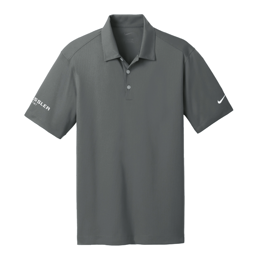 Designed with understated vertical mesh texture, this Dri-Fit moisture-wicking polo is made from 4.4-ounce, 100% polyester fabric. Features a self-fabric collar and three-button placket.