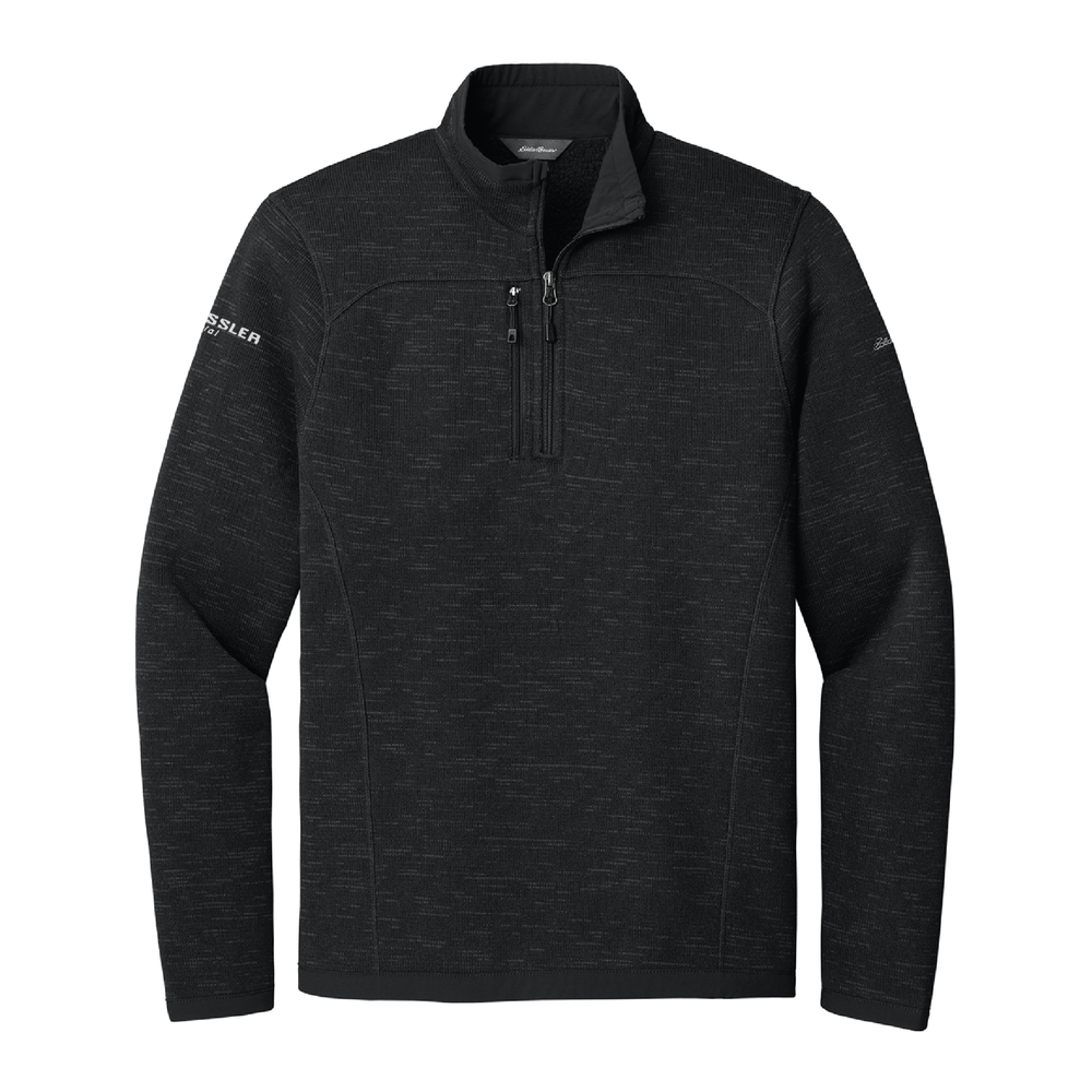 With an authentic outdoorsy lodge look, this refined sweater fleece delivers serious comfort. Smooth-faced and brushed-back for warmth, this anti-pill style also has stretch for easy movement. Woven fabric details add sophistication. Made from 8.1-ounce, 100% polyester sweater fleece with 86/14 polyester/spandex woven trim.