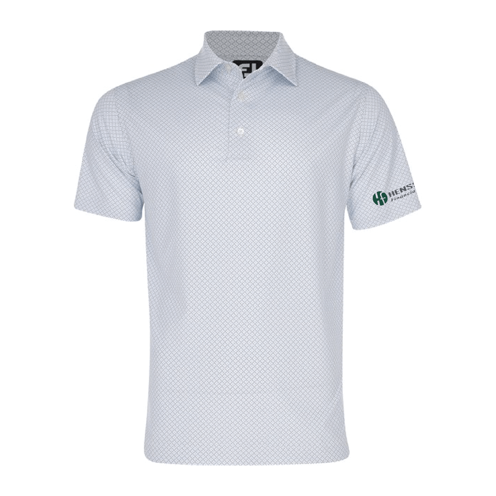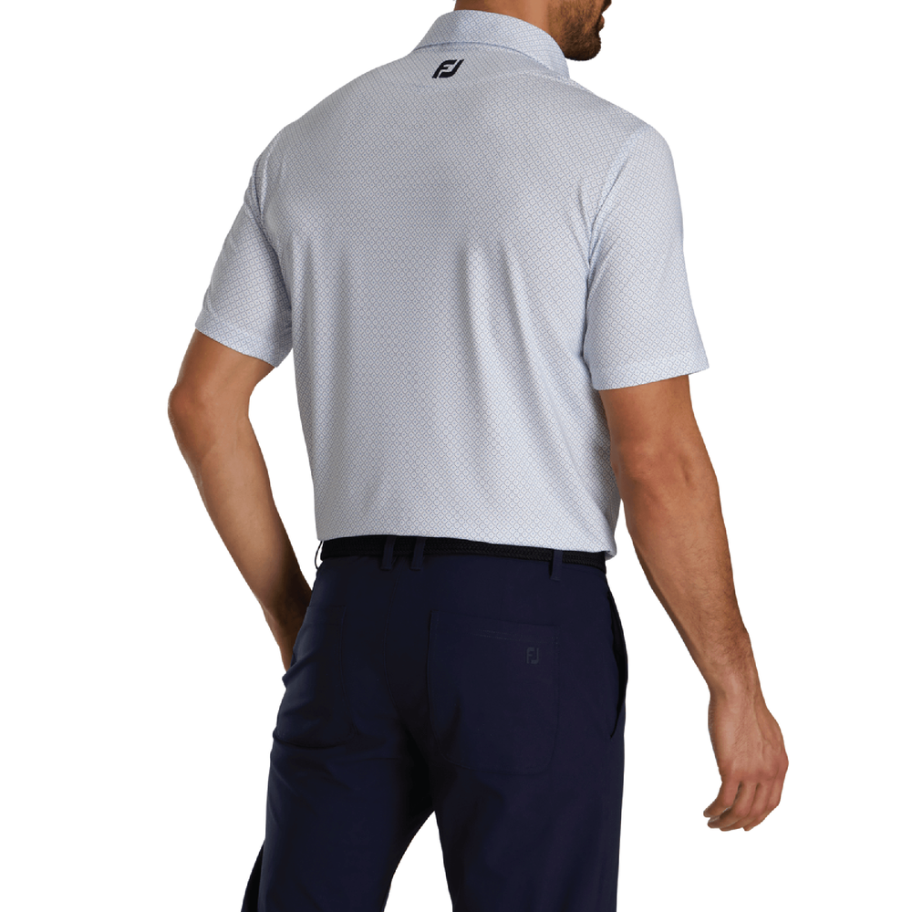 Footjoy Men's Lisle Dot Geo Print Polo - WHITE/LIGHT BLUE/NAVY