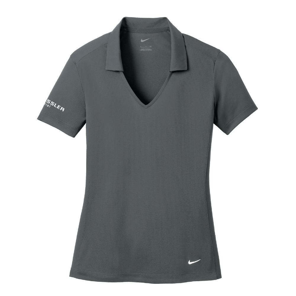 Designed with understated vertical mesh texture, this Dri-Fit moisture-wicking polo is made from 4.4-ounce, 100% polyester fabric. Tailored for a feminine fit with a Johnny collar.