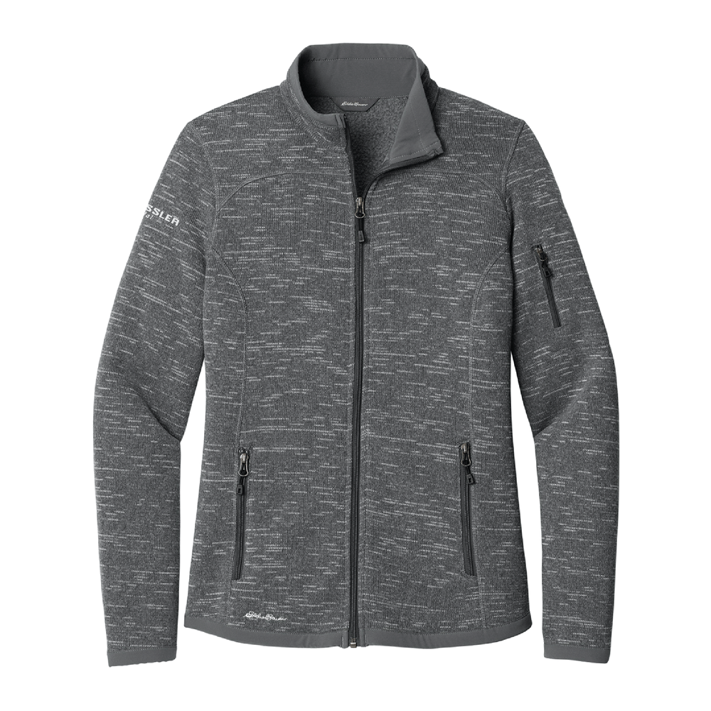 With an authentic outdoorsy lodge look, this refined sweater fleece delivers serious comfort. Smooth-faced and brushed-back for warmth, this anti-pill style also has stretch for easy movement. Woven fabric details add sophistication. Made from 8.1-ounce, 100% polyester sweater fleece with 86/14 polyester/spandex woven trim.