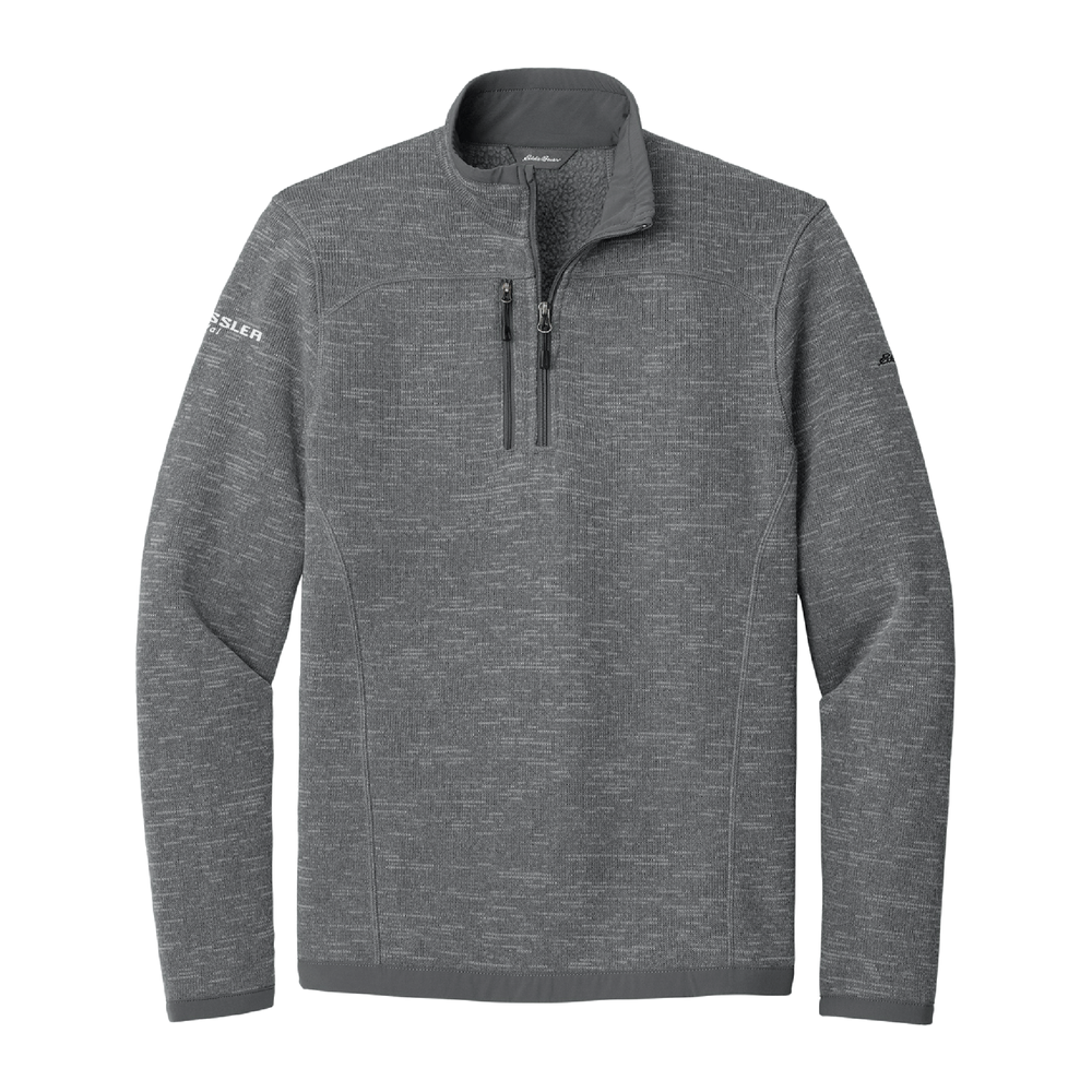 With an authentic outdoorsy lodge look, this refined sweater fleece delivers serious comfort. Smooth-faced and brushed-back for warmth, this anti-pill style also has stretch for easy movement. Woven fabric details add sophistication. Made from 8.1-ounce, 100% polyester sweater fleece with 86/14 polyester/spandex woven trim.